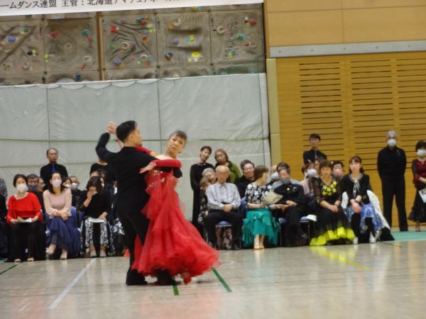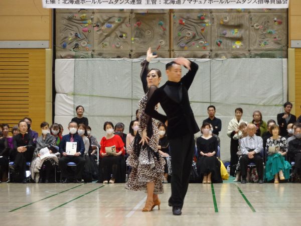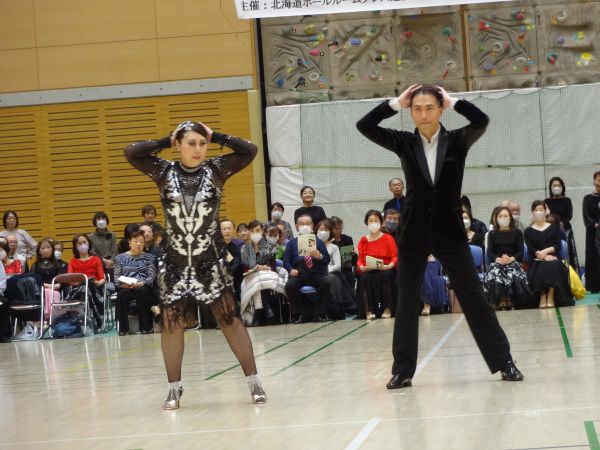 | 2021年ダンスの日記念フェステバルインサッポロは、11月28日(日)12:00~16:00 北海きたえーるサブアリーナにて2年振りに約350名のダンスファンが参加して開催されました。今年は、コロナ感染対策の為、入場制限され、事前にお配りした入場整理券のない方の入場はできず例年の半分以下の入場者となりました。入場者には手指消毒・常時マスク装着・着席者の名前の記録など、もしもの事態に備えると言った万全の対策の基に開催されました。イベントとしてはフリーペアコンペ初級・中級が各12組・アマ・プロデモンストレーションが8組そしてアマデモが2組プロデモが1組、アマデモには牧野裕太・牧野彩香組・横城壮太・飯田なつみ組・プロデモには小野栄治先生・小野幸恵先生ご夫妻に披露して頂きました。また、ダンスタイムも約2時間あり、お客様も大変足していました。 |