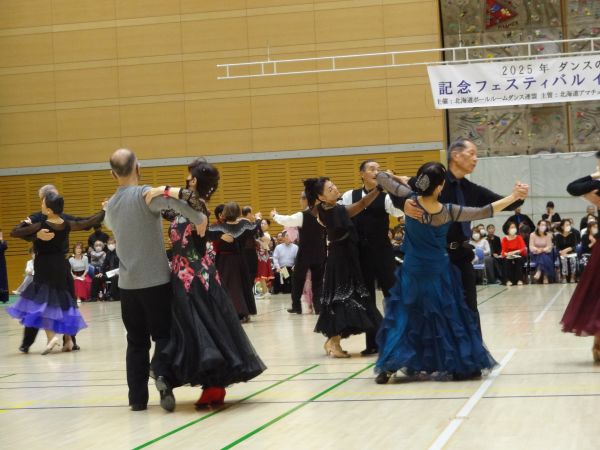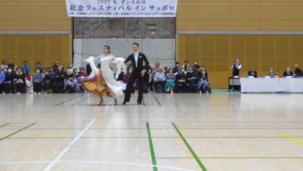 | 2018年ダンスの日記念フェステバルインサッポロは、11月25日(日)12:00~16:30 北海きたえーるサブアリーナにて約600名のダンスファンが参加して大盛況で終了しました。今年のサークル発表には、目の不自由な人達のサークル、ブラインドダンス教室「ロマン」によるワルツ・タンゴメドレー・北区、麻布にある「ダンススタジオ・ミカ」からXYZ'ダンサーズのフォーメーシが披露されました。アマデモには畑中大空・山田志保組・プロデモには関 泰規・恵 ご夫妻に披露して頂きました。また、ダンスタイムも約2時間あり、お客様も大変満足していました。 |